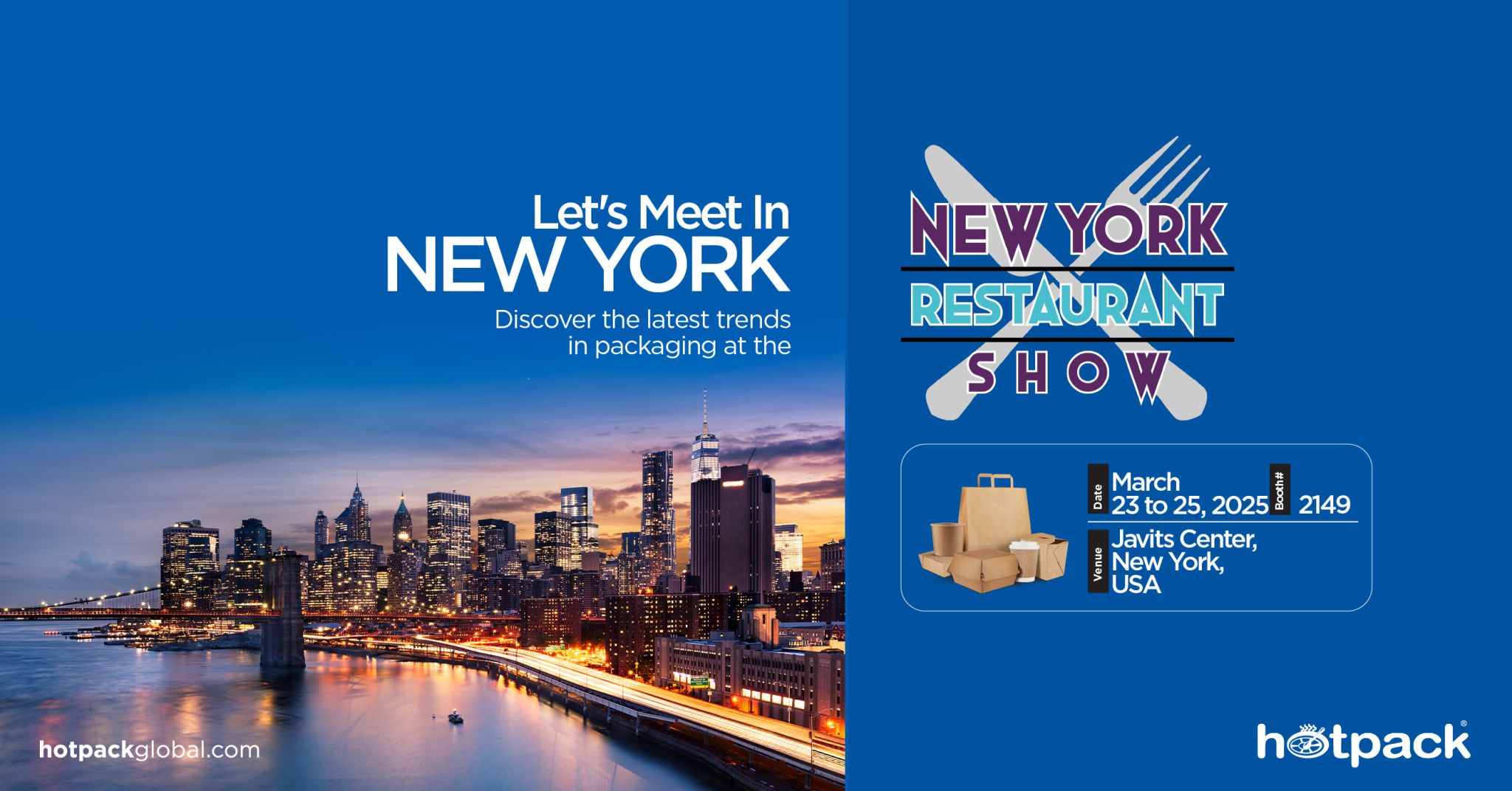 Meet us at the New York Restaurant Show , discover the latest food packaging trends, and optimise your packaging strategy. Meet our team at booth 2149 from March 23rd to 25th We are always looking forward to forging new relationships and helping out with our global expertise.